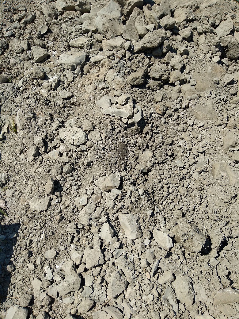 粉砕機に入る大きさまで砕いてから粉砕機入れての作業は粒子が細かいくちゃは宙に舞っています。